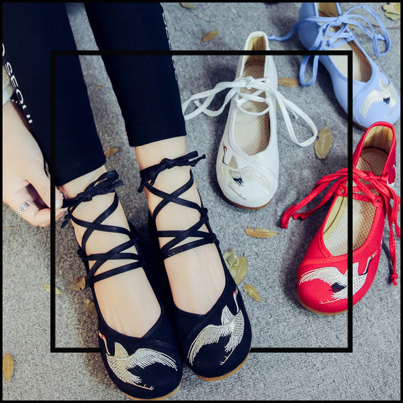 圆头休闲2018新款绑带舞蹈鞋 网游仙侠古装女鞋仙鹤绣花汉服配鞋热门设计联盟服务商