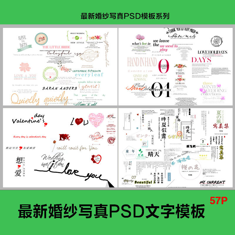 影楼PS婚纱照字母相册沛 英文字体设计素材PSD分层模板57P热门设计联盟服务商