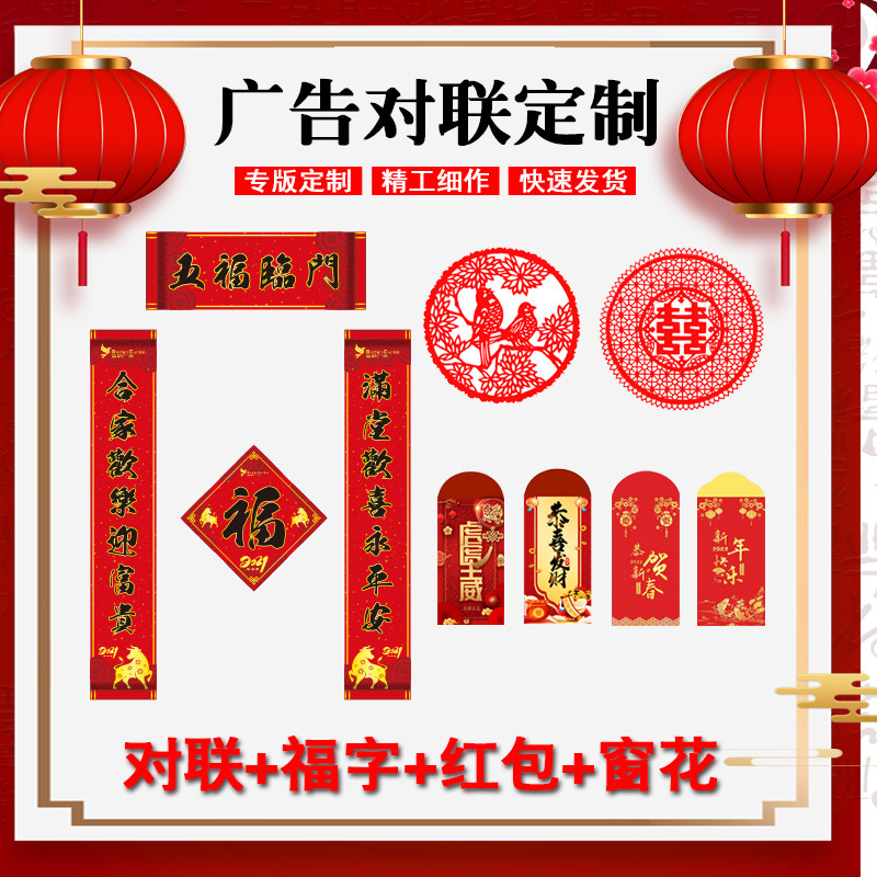 对联定制厂家春联印刷福字窗花大礼包定做公司logo企业银行广告热门设计联盟服务商