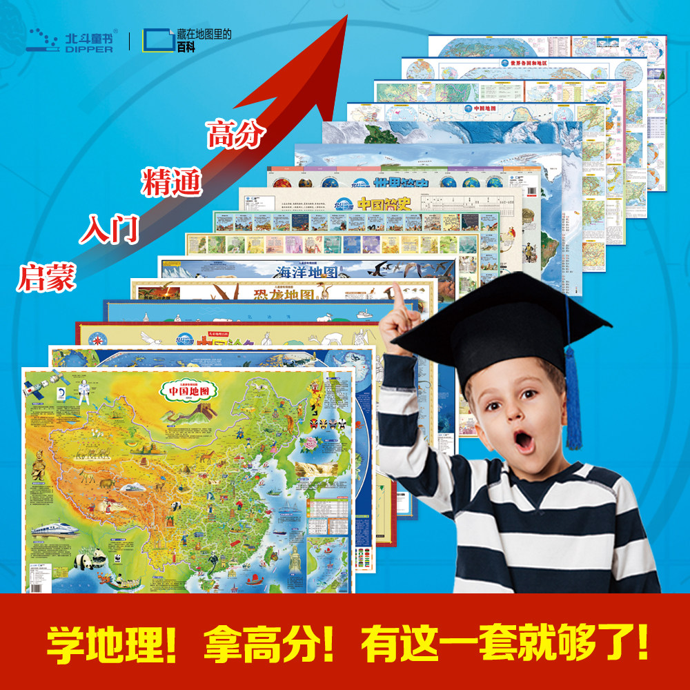 藏在地图里的大百科全16张大尺寸地图贴图 儿童地理百科中国世界地图恐龙海洋地图古诗词成语地图 地理知识百科科普图热门设计联盟服务商