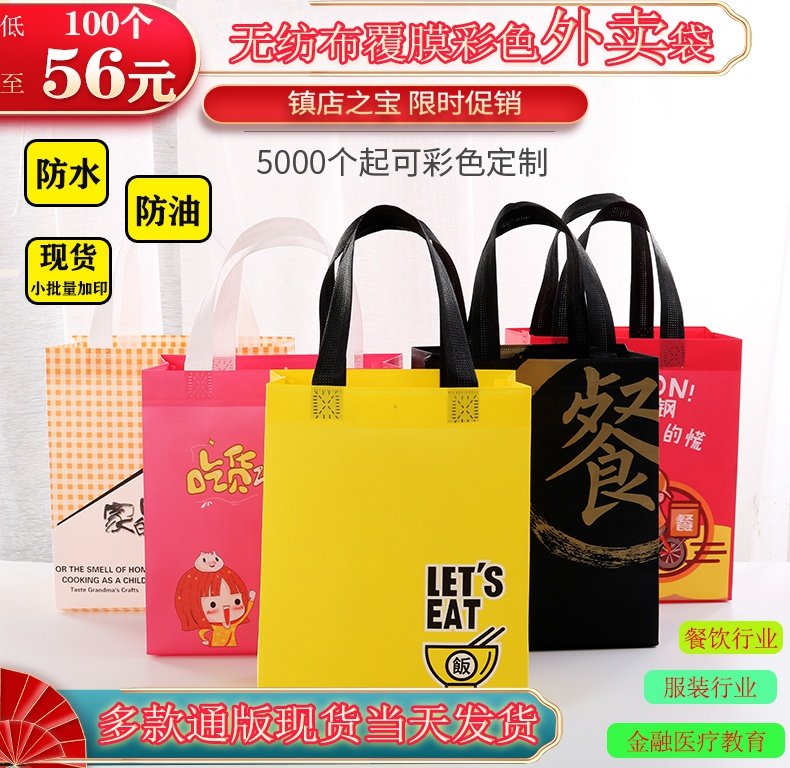 外卖包装袋无纺布包装定制打包袋设计防水防油包装可降解环保袋。热门设计联盟服务商