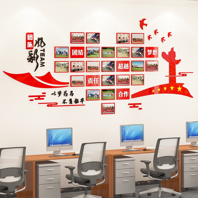 团队员工风采文化墙公司企业照片展示墙3d立体励志墙贴办公室装饰热门设计联盟服务商