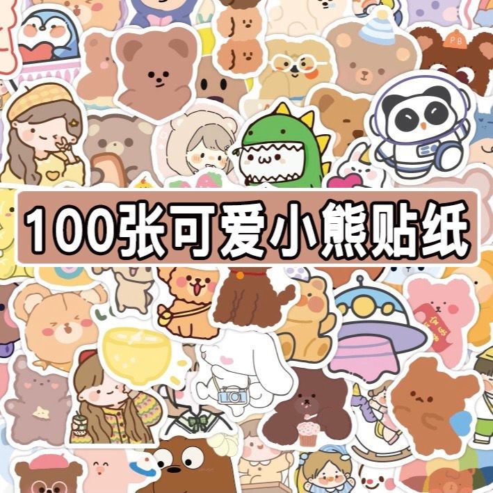 100张可爱小熊手帐贴纸少女心ins高颜值小熊手账素材水杯防水贴画热门设计联盟服务商