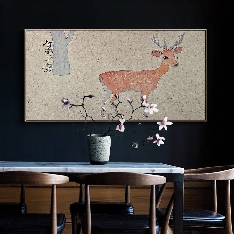 李知弥x新中式沙发背景墙装饰画横幅卧B室挂画动物鹿壁画热门设计联盟服务商