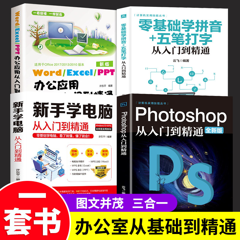 新手学电脑零基础学拼音+五笔打字Photoshop 办公应用入门到精通零基础学习word书籍教程计算机基础知识书籍office办公软件书自学热门设计联盟服务商