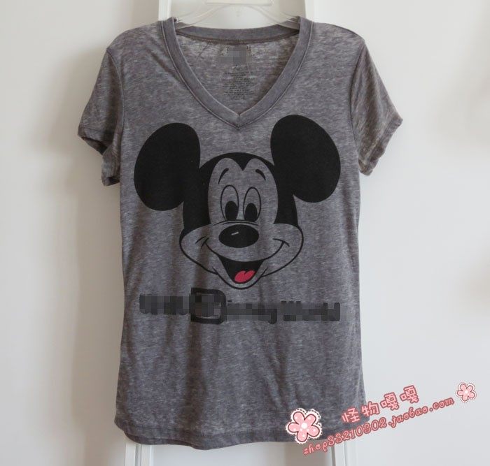 女装 卡通 老鼠 短袖V领做旧薄款微透复古T恤热门设计联盟服务商