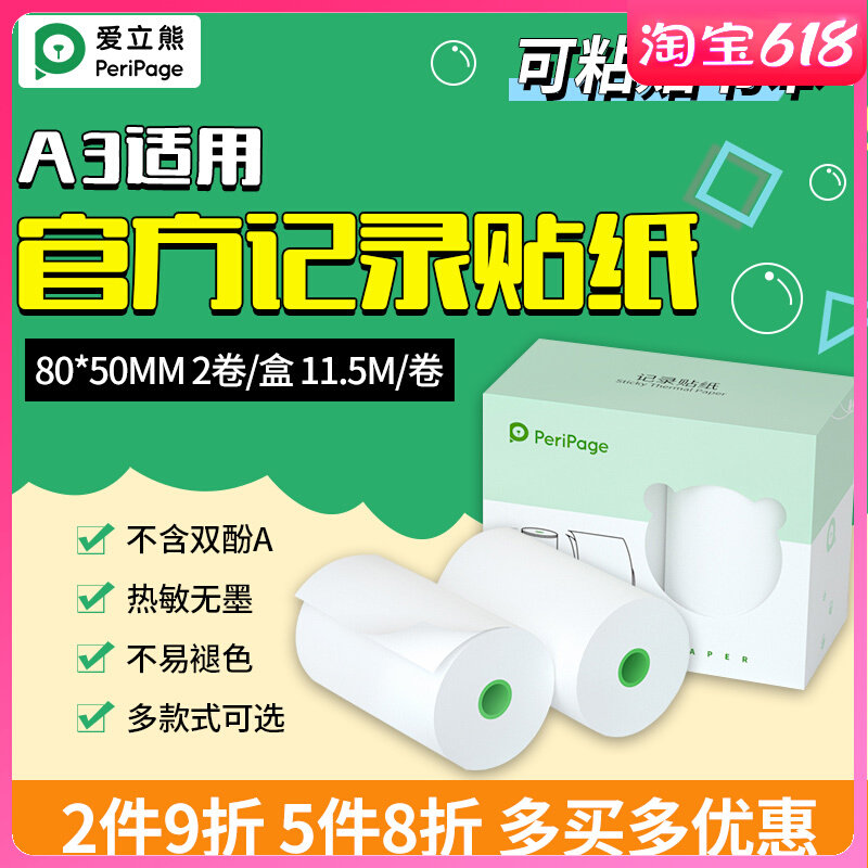 爱立熊A3用官方10年褪色定制热敏纸80mm*50mm不含双酚A错题打印纸热门设计联盟服务商
