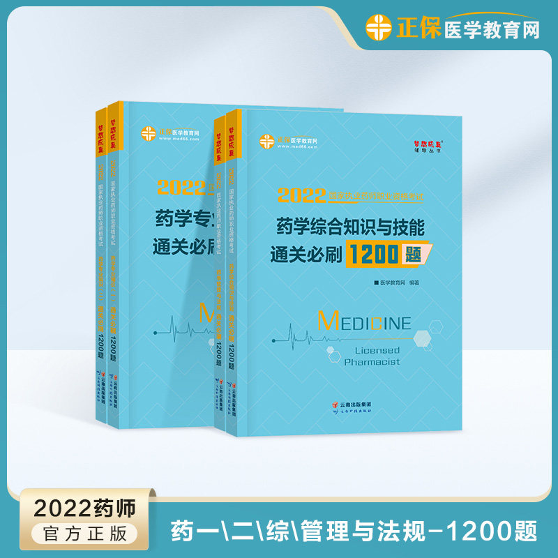 【官方预售】医学教育网 2022年执业药师教材辅导书通关必刷1200题 药学一二综合知识与技能药事管理与法规 国家执业药药师考试4本热门设计联盟服务商