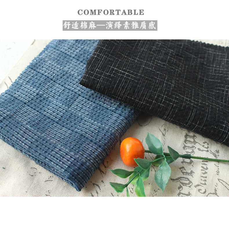 棉麻布料服装面料夏季清仓色织蓝色格子黑色涤棉水洗肌理设计手工热门设计联盟服务商