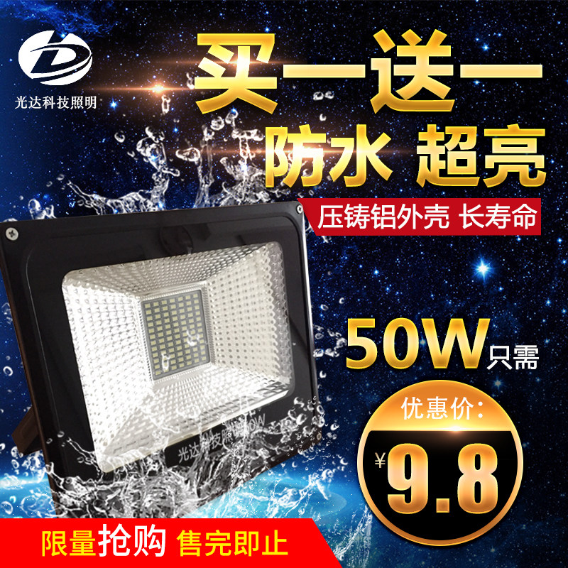 LED投光灯50W防水室外 厂房泛光灯广告灯超亮100W200瓦投射灯户外热门设计联盟服务商